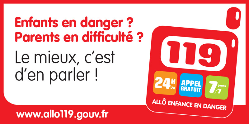 Depuis plus de 25 ans, ce dispositif téléphonique, à l’initiative de la Fondation pour l’Enfance sous la présidence d’Anne-Aymone Giscard d’Estaing, s’occupe de répondre aux appels d’enfants en danger ou en risque de l’être et de toute personne confrontée à ce type de situations. Aider à leur dépistage et faciliter la protection des mineurs en danger sont les principales missions du 119 – Allô Enfance en danger. Ses écoutants peuvent transmettre les informations préoccupantes concernant ces enfants aux services départementaux compétents en la matière : les cellules de recueil des informations préoccupantes (CRIP) aux fins d’évaluation. Chaque jour en France, deux enfants décèdent à la suite de maltraitances. Protéger l’enfance en danger relève donc de la responsabilité de chacun.